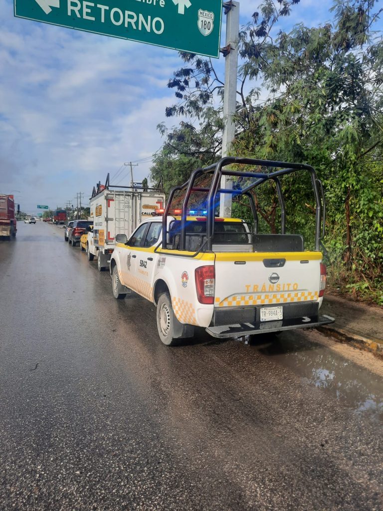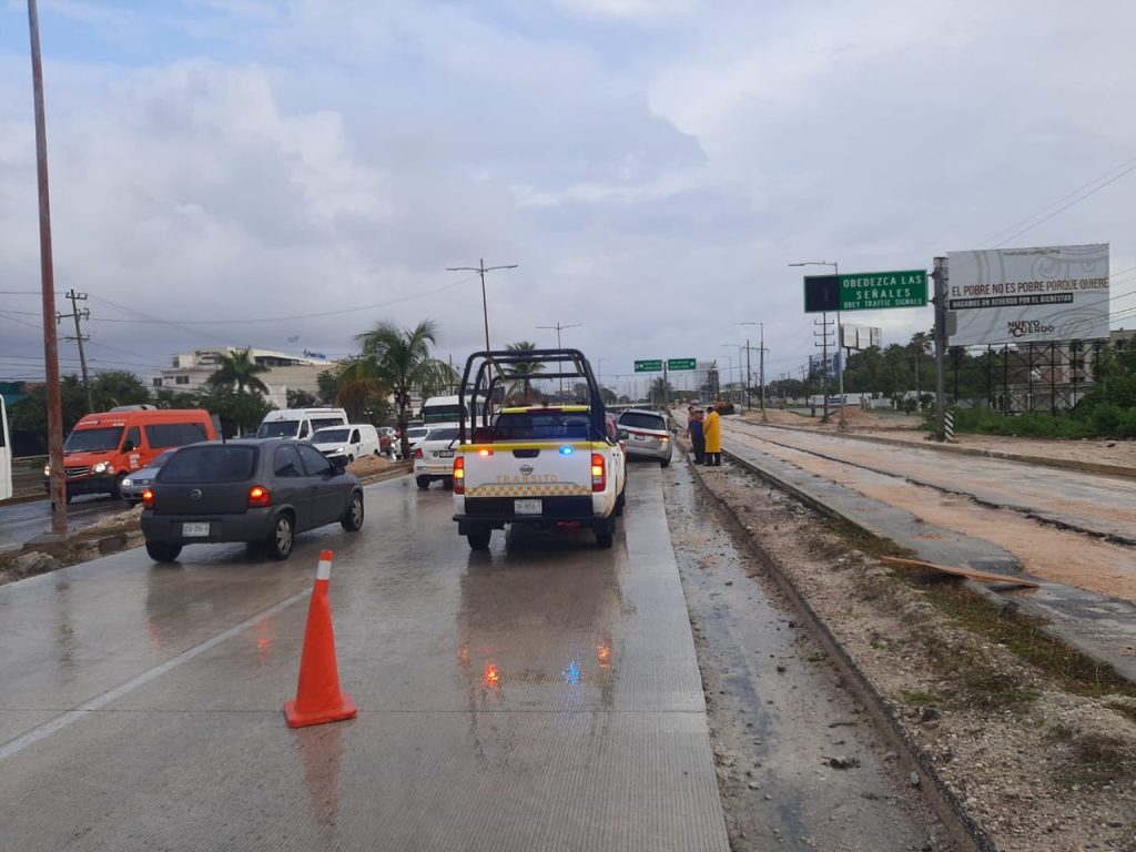Elementos de la Dirección de Tránsito realizaron recorridos de prevención y vigilancia por lluvias, además de apoyo para retirar basura de las rejillas, ya que se detectaron encharcamientos en avenidas como Yaxchilán con Kabah, lateral de Tulum con Calle Tejón, Tulum con Avenida Labná, Bonampak con Sayil, Bonampak con Uxmal, Cobá y Palenque, por mencionar algunas.